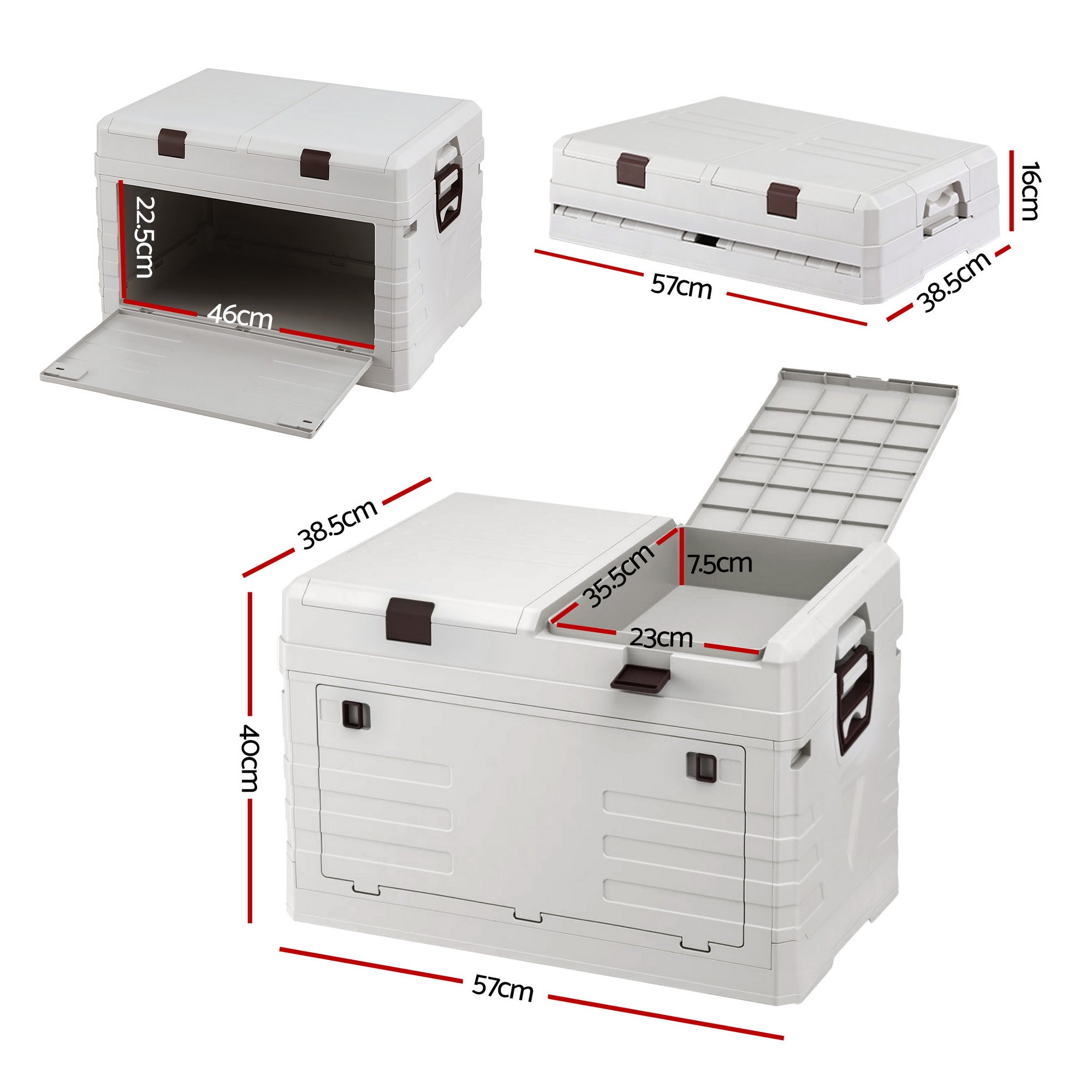 The Gardeon two-tier storage organizer offers three-way access for ultimate convenience. Features include a fully removable top lid and double doors on the top tier with secure clasps. This large-capacity, collapsible box is ideal for home organization in closets, kitchens, or garages. It's also perfect for road trips and camping to store drinks, groceries, and gear. The sturdy, load-bearing design prevents collapse, while the versatile lidded compartments keep your car trunk, sedan, or SUV neatly organized and your items easily visible and accessible.