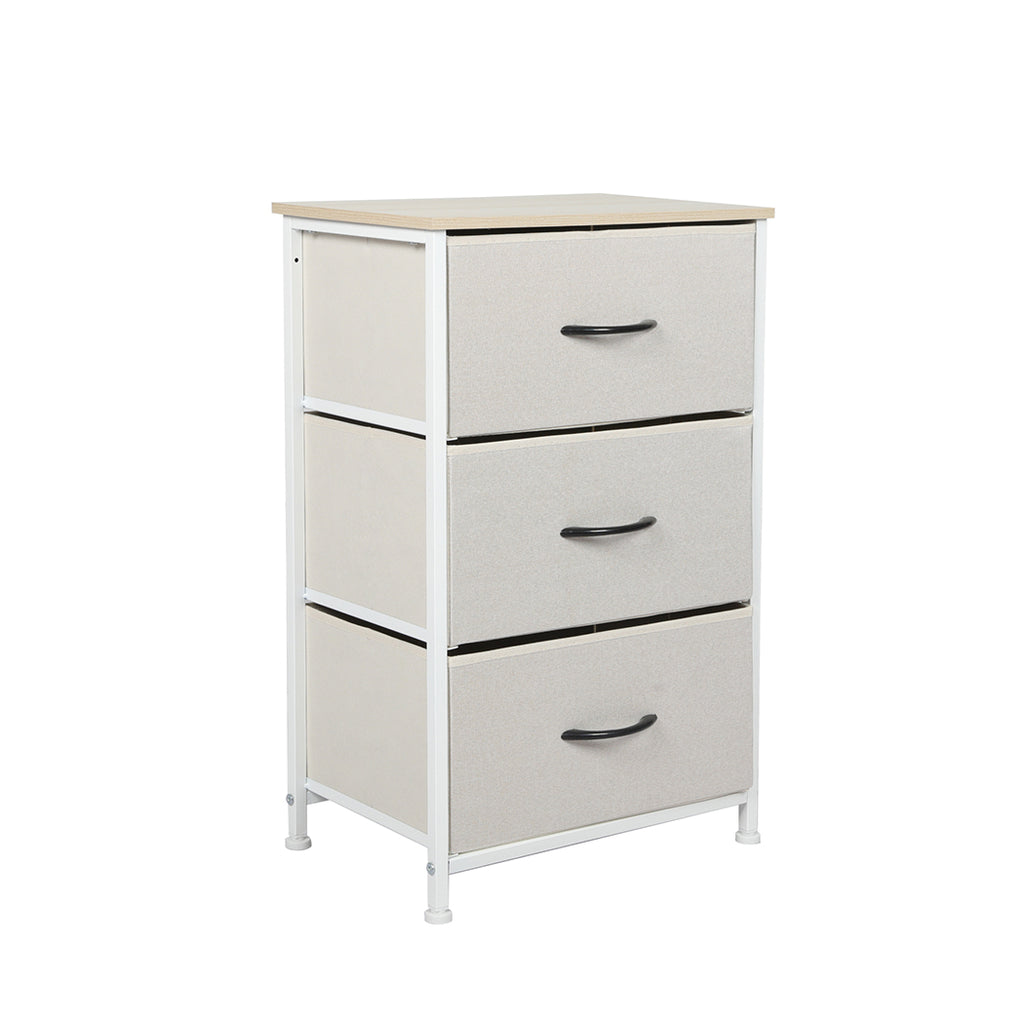 Keep your home neat and organised with this 3-drawer fabric bedside cabinet. Featuring a sturdy MDF top, strong steel frame, and removable drawers, it’s a lightweight yet durable solution for storing clothes, toys, linen, or everyday essentials. Compact in size, it works just as well in bedrooms, living rooms, or laundry rooms.
