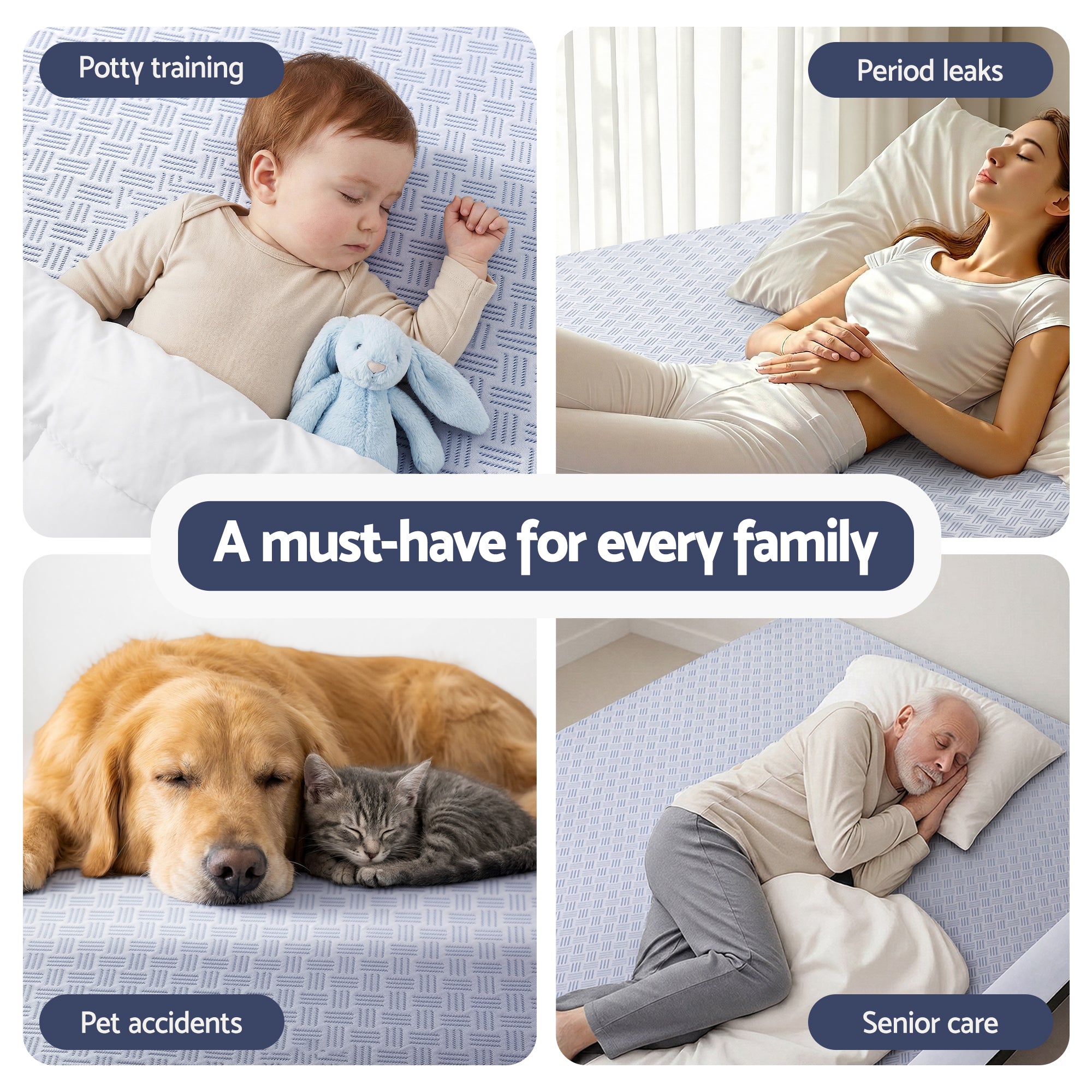 A waterproof backing adds reliable everyday protection against spills and moisture while remaining soft and quiet, ensuring your sleep is never disturbed. The lightweight design enhances comfort without bulk, making it suitable for daily use in bedrooms, baby beds and family homes with pets.