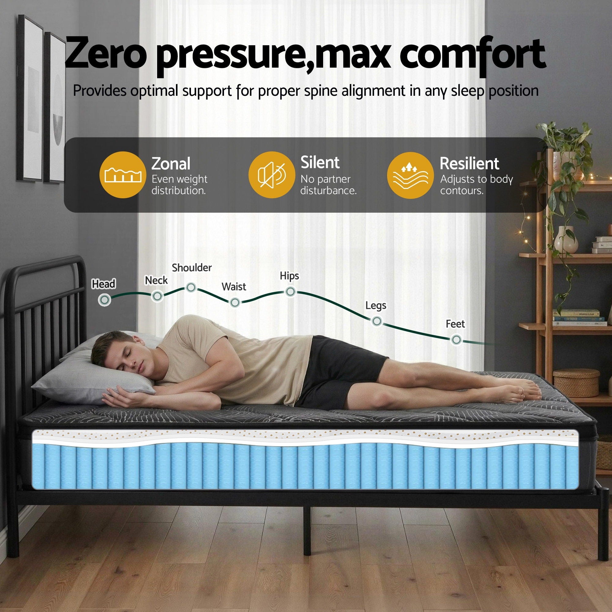 Upgrade your sleep sanctuary with the Giselle Bedding 25cm Independent Pocket Spring Mattress. While ordinary mattresses rely solely on memory foam that can retain heat and lose shape, our Noir Series combines the resilience of Natural Latex with the stability of pocket springs. This hybrid design offers the perfect balance of "sink-in" comfort and "push-back" support.
