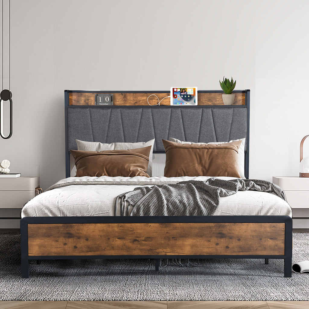 Upgrade your sleep setup with the Grange – a robust, industrial-style double bed frame that blends practical design with modern convenience. With a padded headboard, reinforced steel frame, built-in USB ports and power outlets, and a clever storage shelf, it’s the smarter way to sleep, charge, and relax.