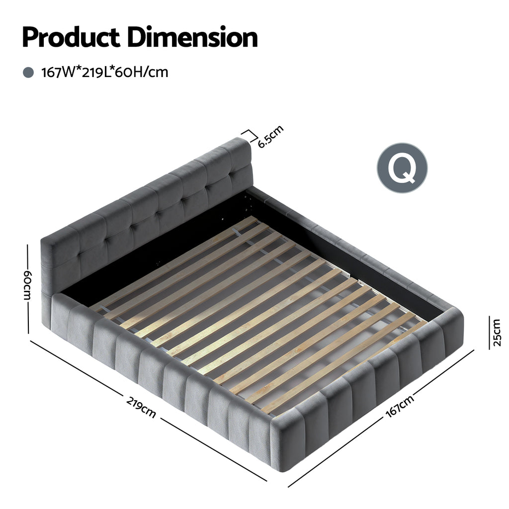 1 x Haven Queen Bed Frame (Velvet Grey)