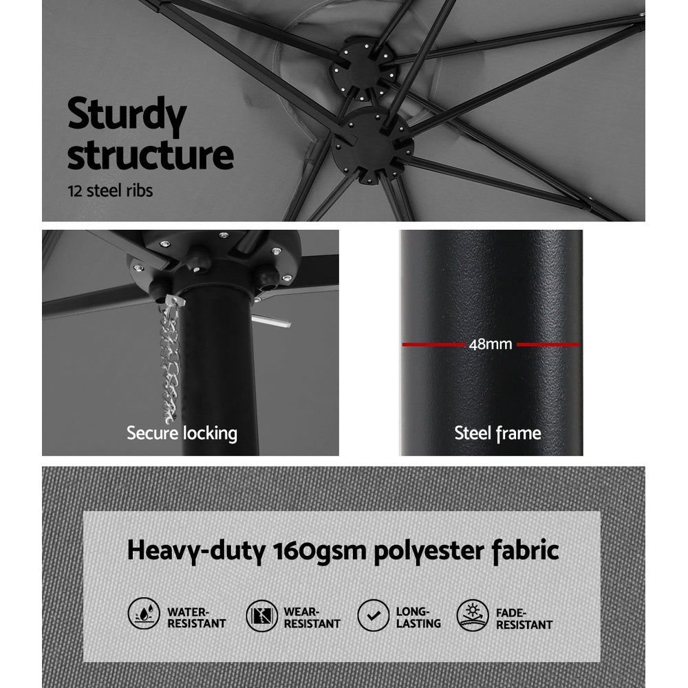 4.57m Outdoor Umbrella w/Base Stand Beach Pole Garden Tilt Charcoal-3