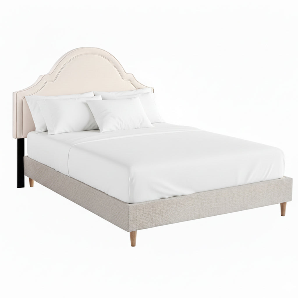 Upholstered faux linen base with a modern beige finish