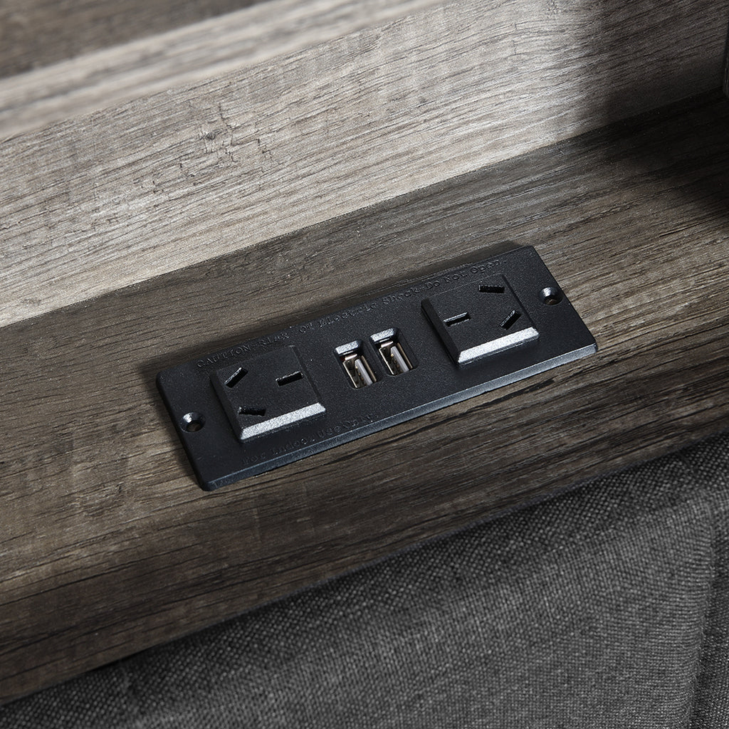 2 x AC outlets and 2 x USB ports integrated into the headboard – perfect for phones, tablets, or lamps. -