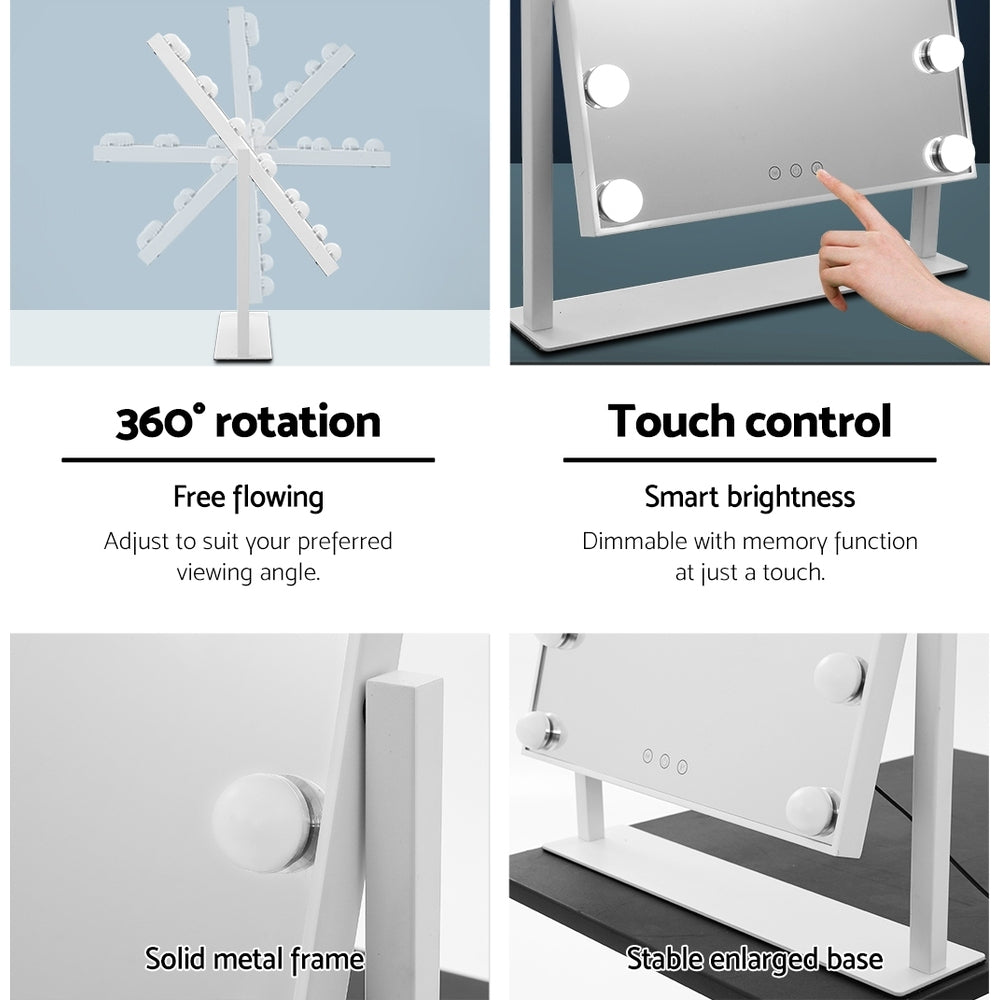 Fairest beauty looks even better with our Standing Makeup Mirror. Looking very much like a celebrity makeup mirror, our mirror features nine LED bulbs on its slim 2.5cm thick frame. In fact, the entire mirror is almost frameless. The lights can be adjusted for brightness and colour, from cool white to warm white with its touch control, offering a soft and ambient glow to complement your true image. Better still, the mirror is totally rotable and stands on an enlarged base for added stability. Mirror your exceptional countenance with this lovely Standing Makeup Mirror.