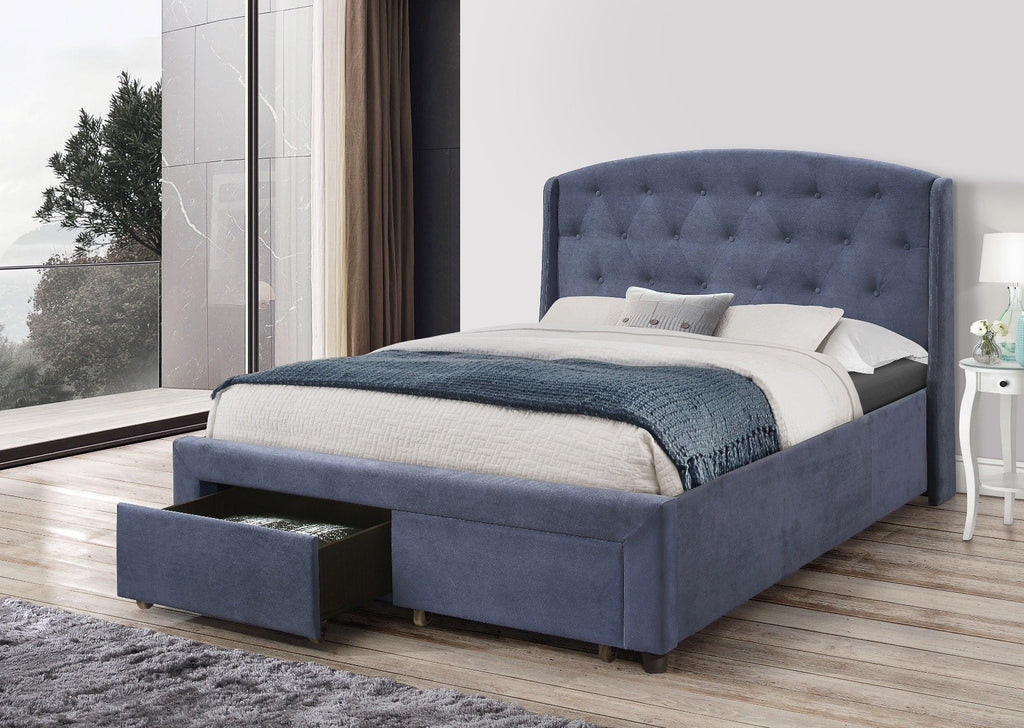 Stella bed frame is very much royal with its design, the wings, the high-rise feature, and the studded buttons make it a very exclusive piece of furniture in your bedroom.The headboard will offer great support to those who would like to lean back and enjoy a book or magazine before falling in sleep.