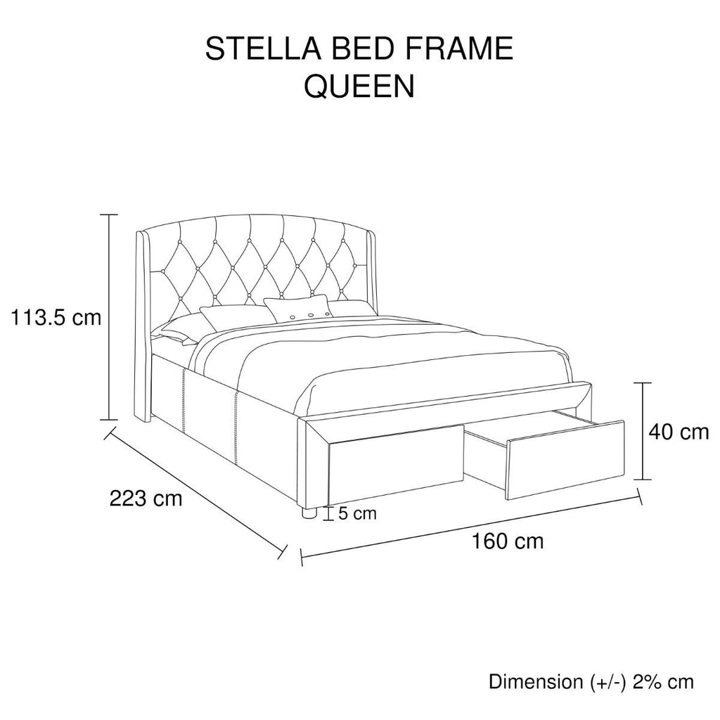 Our stylish Stella bed frame is upholstered with the premium quality fabric from Malaysia. Fabric is well known for being resistant against wear and tear, so it will surely be a good investment as a statement piece of bedroom furniture.
