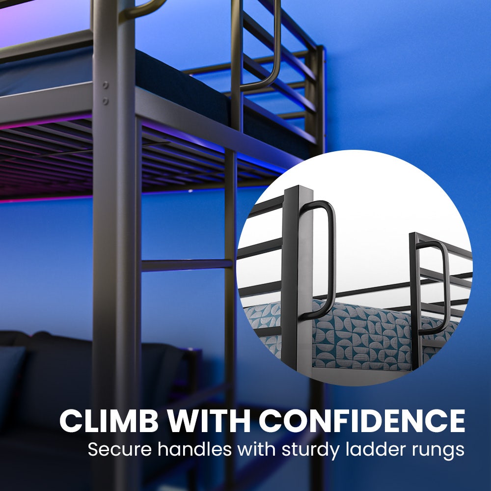 Each bed holds up to 120kg. The fixed ladder stays put. No wobbles. No slips. Just confidence every time you climb.