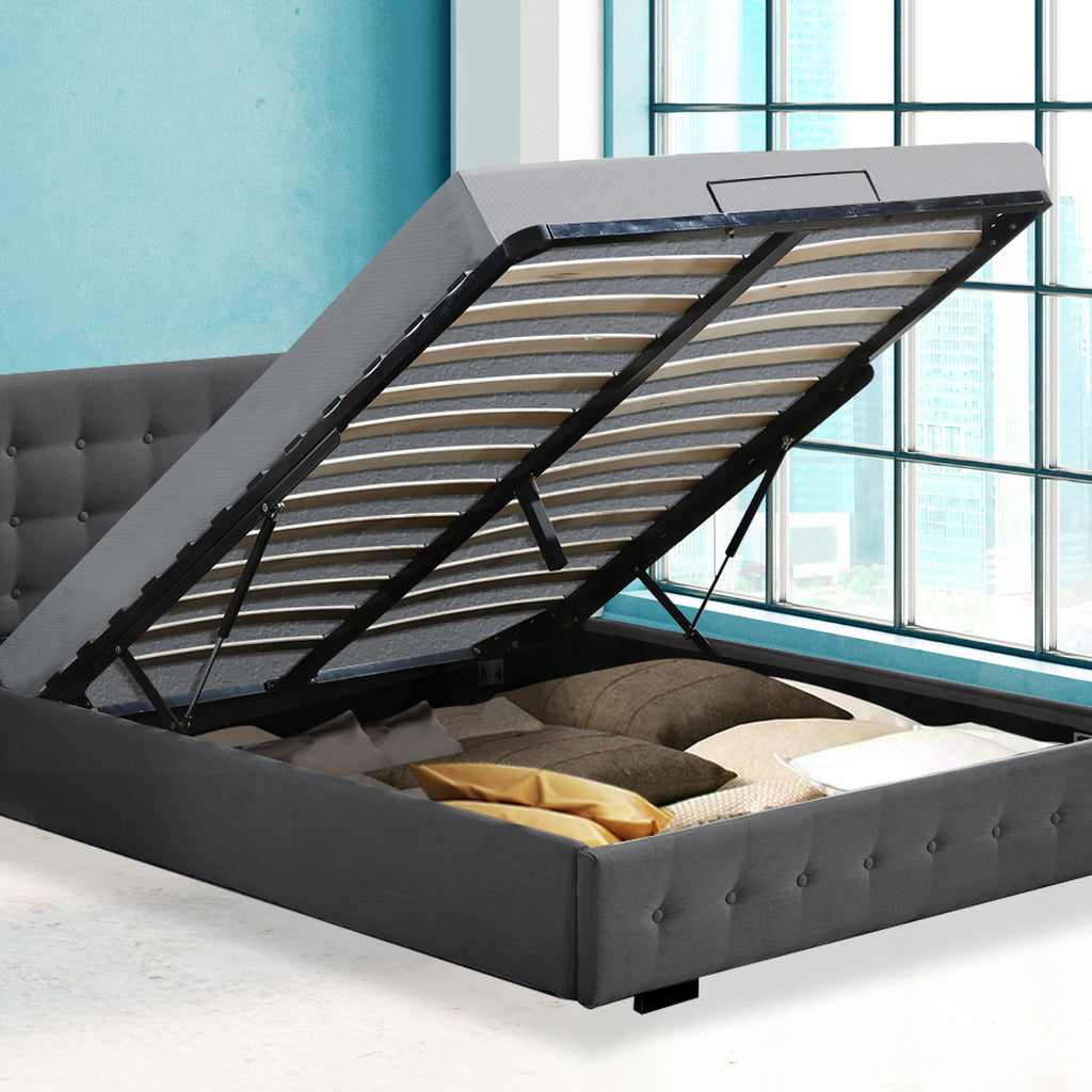 1 x The Altera Gas Lift Storage Bed Frame – Queen, Dark Grey